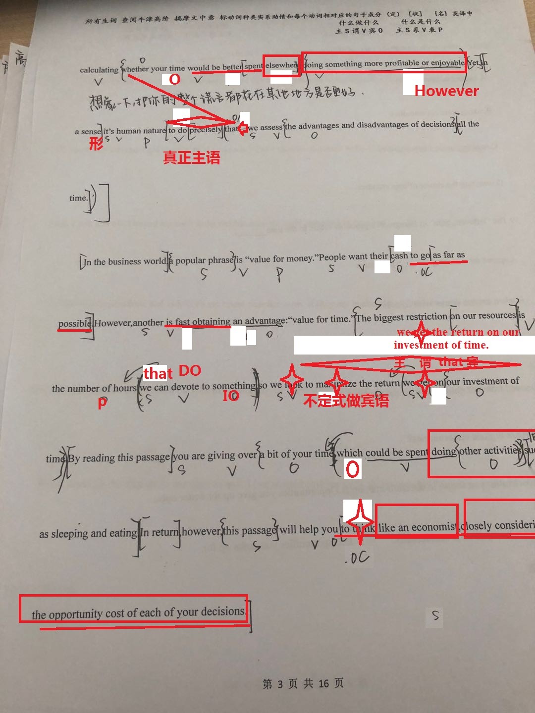 一 生词查得还不够, 二 句子成分划的不对, 三 题目做错,就说明文章不理解,但这一点孩子没有当回事情。